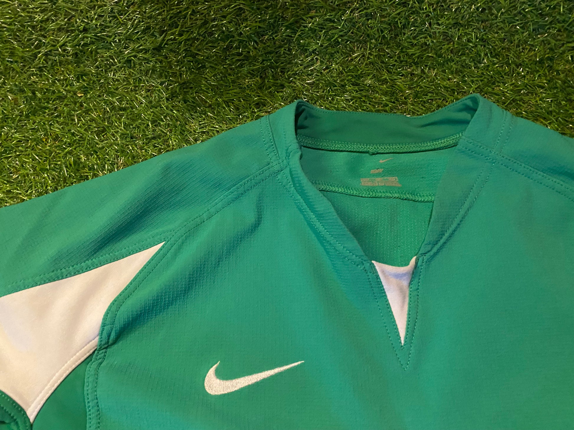 Nike Rugby XXL 2XL Mans Stretch Tight Fit Green / White Jersey Rugby Union League Sports